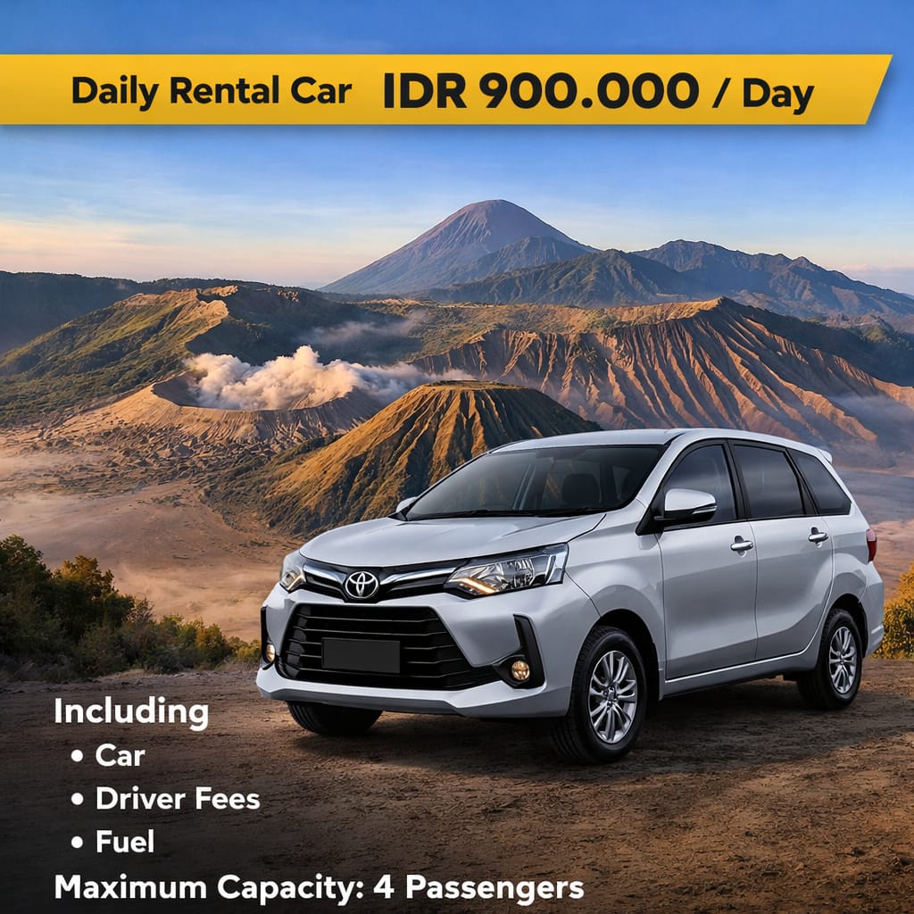 Home / Packages / Daily Rental Car Daily Rental CarRp 900.000 Daily Rental Car quantity Add to cart Whatsapp Category: Packages Description Description Daily Rental Car IDR 900.000 / Day Including: Car Driver Fees Fuel Maximum Capacity: 4 Passengers Produk lainnya Must Try Foods in INDONESIA Whatsapp Batik Painting Tour Whatsapp Bromo Midnight Tour Whatsapp Bison transport Whatsapp